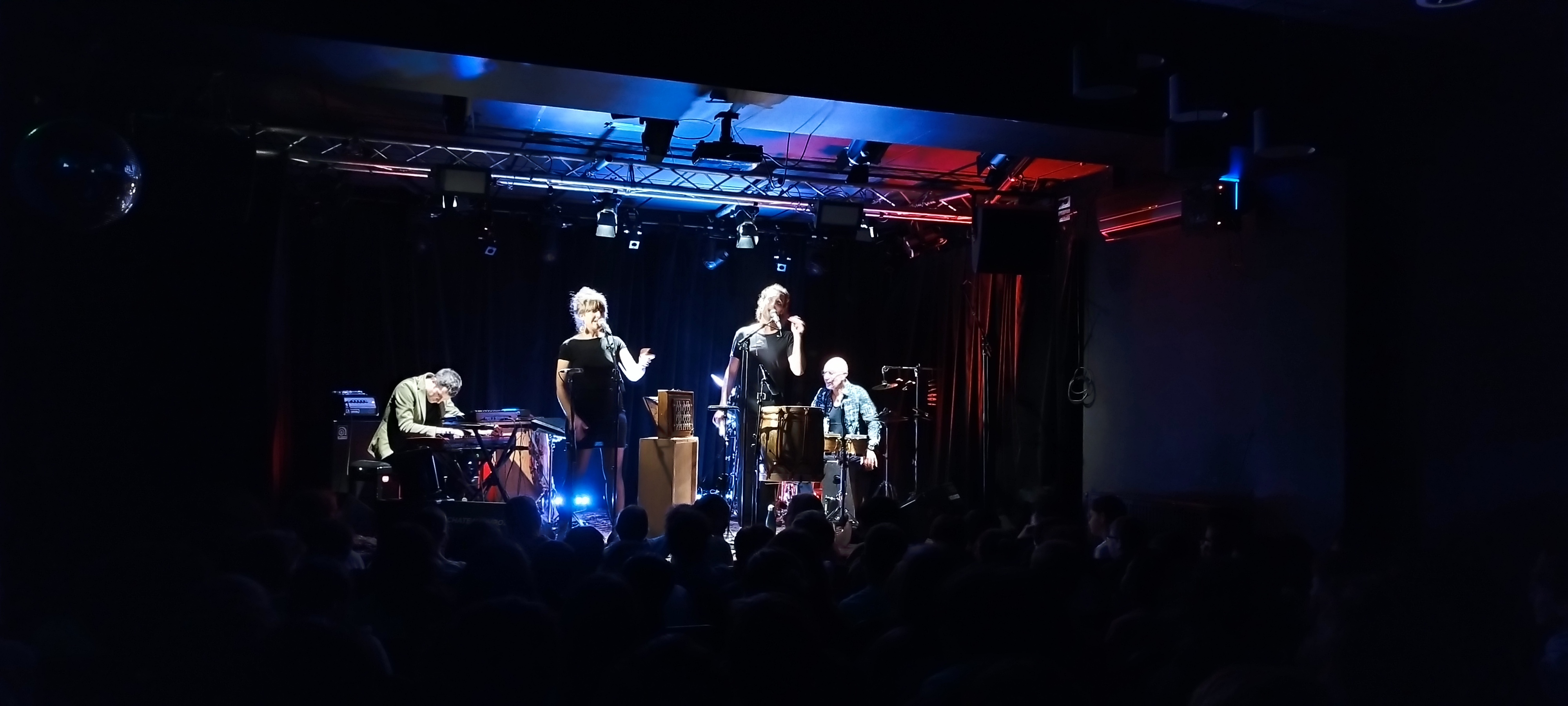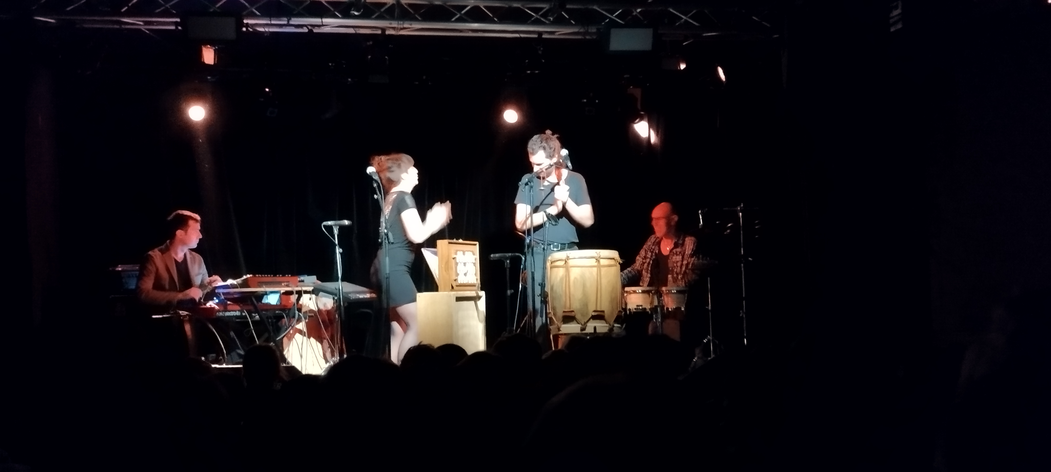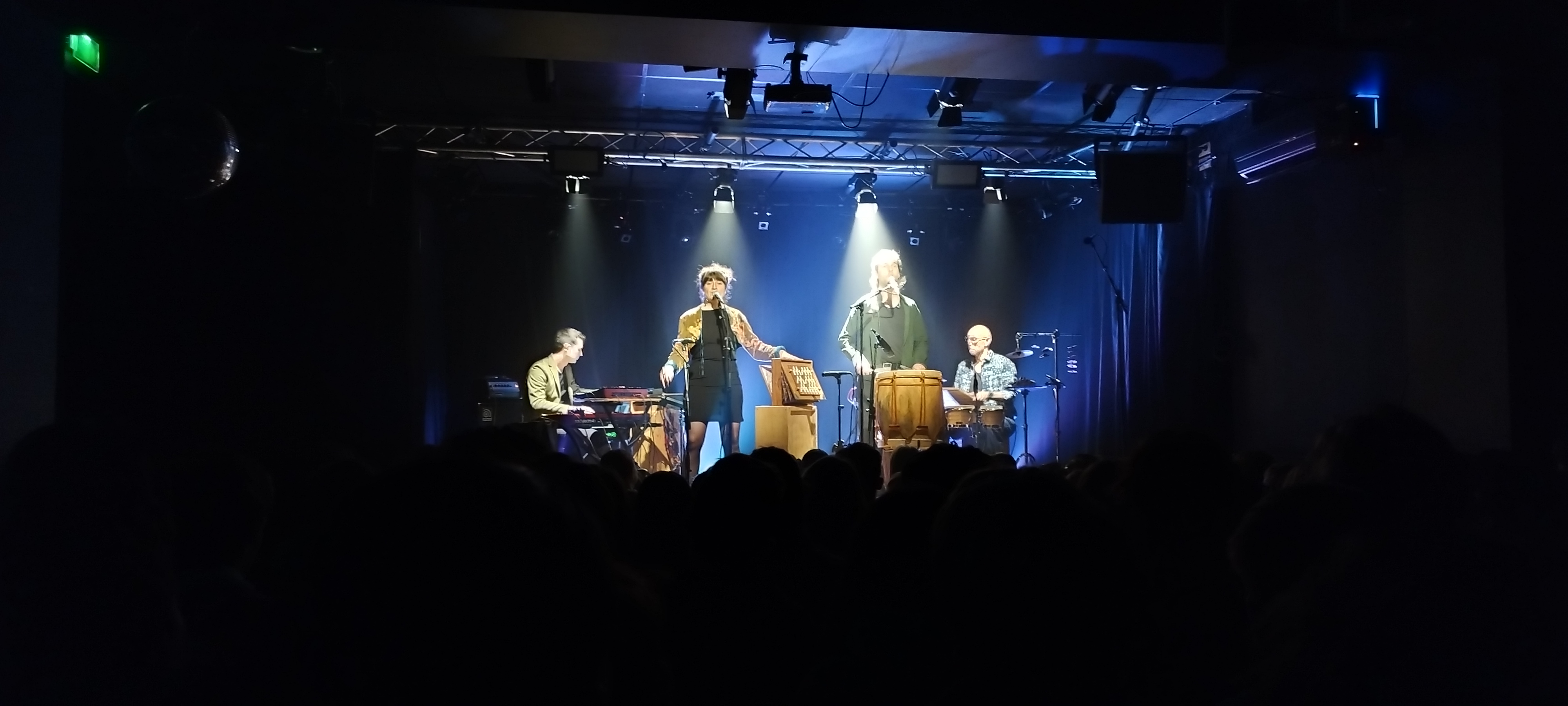 Des instruments habituels : claviers, batterie, accordéon, percussions bongos, congas, cymbales ... enrichis par des éléments très originaux : le quijada (machoire d'âne) péruvien, la shruti-box,instrument indien et d'autres encore...